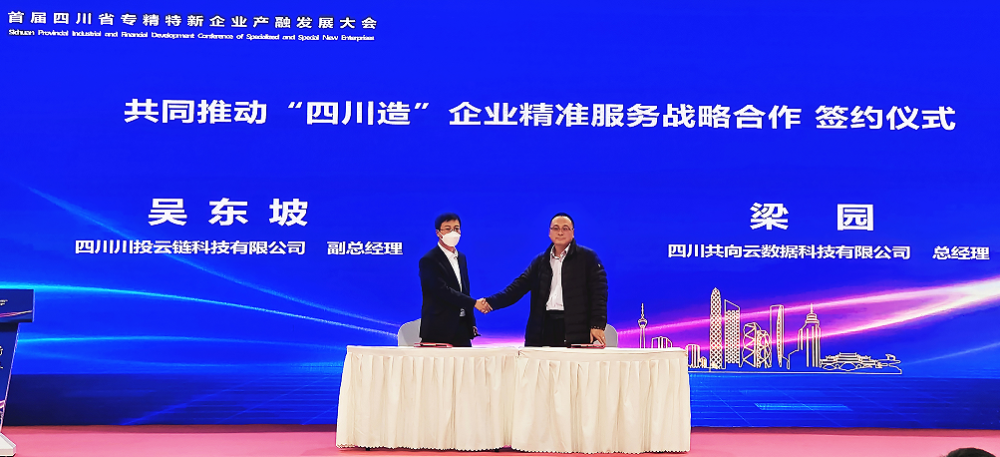 会上,四川3044永利集团云链科技有限公司“撮合拍供应链金融智慧服务平台”,与四川共向云数据科技有限公司“四川省数字贸易平台”,就双方平台强强联合共同推动“四川造”企业精准服务进行战略合作签约。